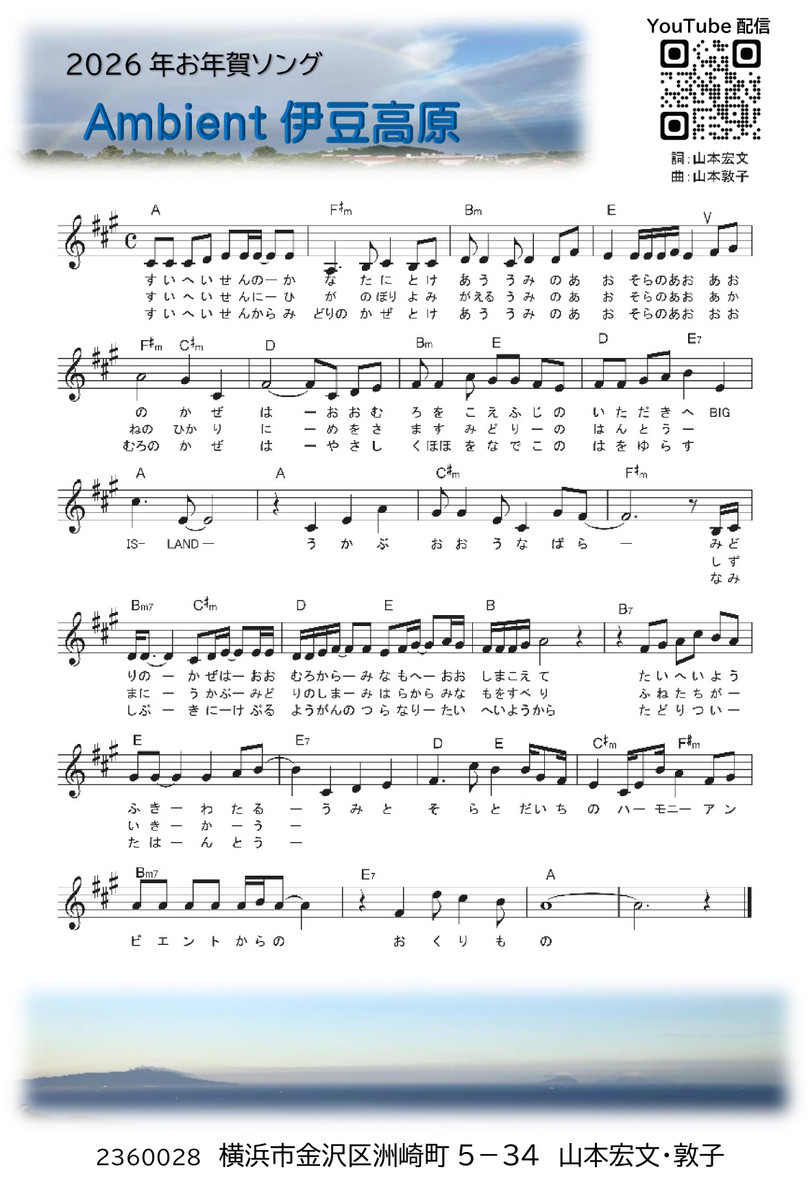 我が家のオリジナルソング年賀状は毎年オリジナルソングと決めて約30年。 前年に生まれた楽曲が裏面を飾っています。 今年は私が作詞したものであっちゃんとかわりばんこで発表しています。 YouTubeが発...